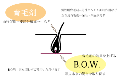 その成長因子を育毛のメカニズムに応用させたのが、「頭皮専用美容液B.O.W.」。